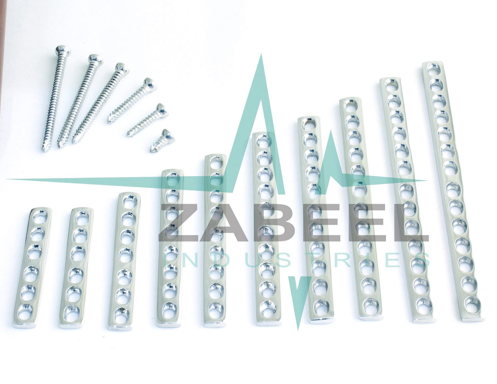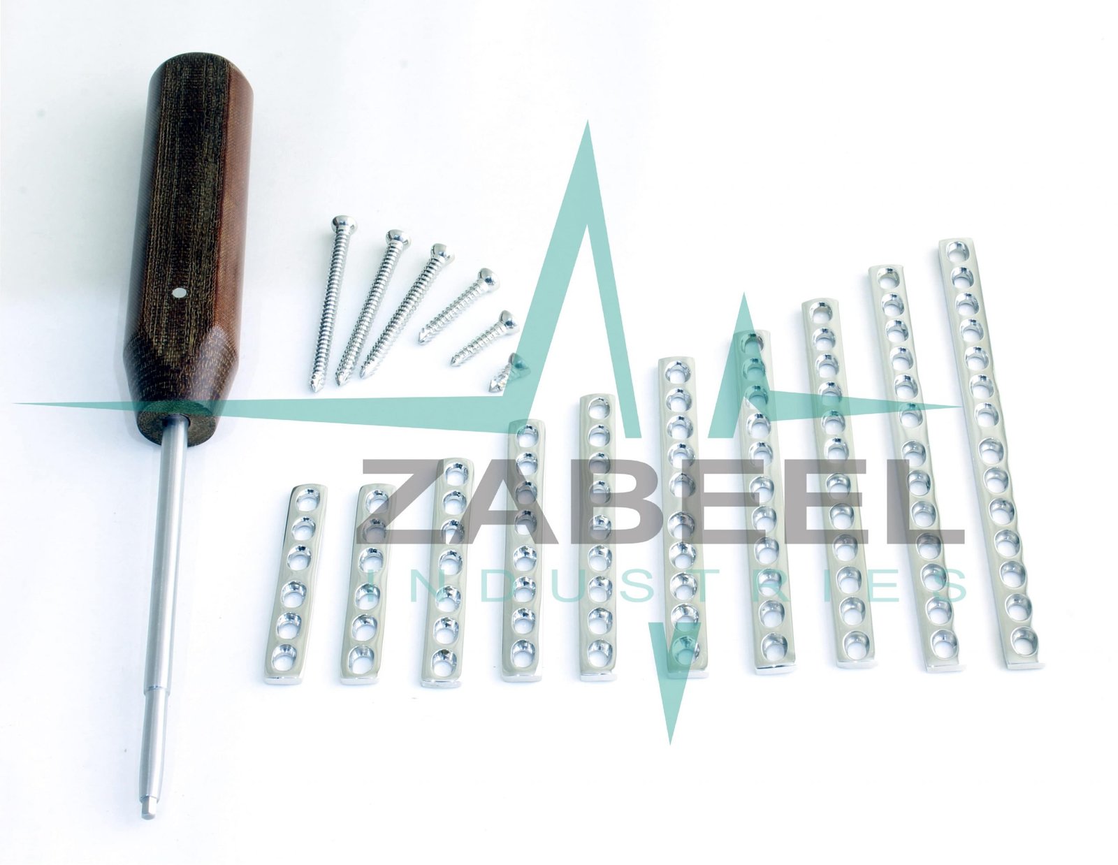 2.4mm DCP Bone Plates 10 PCs & Cortical Screws Self Tapping 110 PCs Set Ortho/Vet Instrument + 1 PC of Hex Screw Driver by ZaBeel Industries